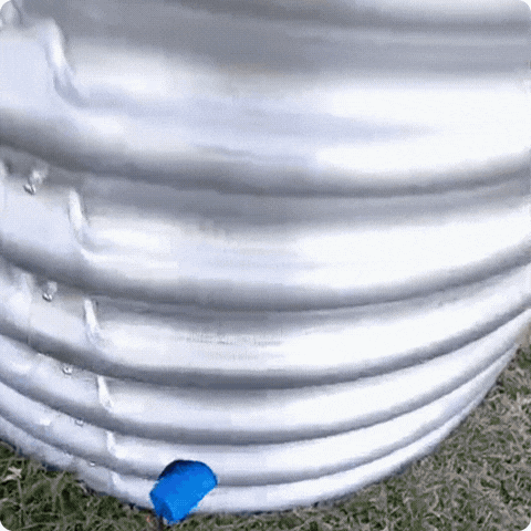 La estructura de chapa no tiene piso. Viene con una funda de Lona recubierta de PVC de 600 micrones con tratamiento retardante a la llama, uv y antihongo. La lona tiene un tapon para desagote para el vaciado.